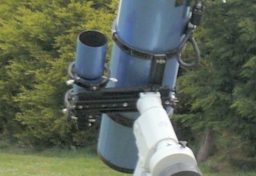 Pour l'autoguidage j'utilise une lunette de 80 mm de diamètre et de 400 mm de focale montée en parallèle avec l'instrument imageur. Guide en parallèle