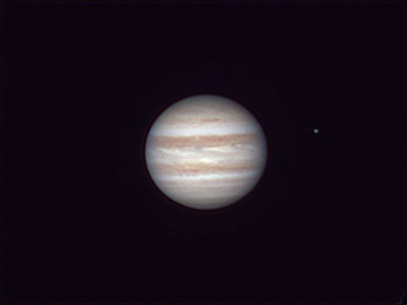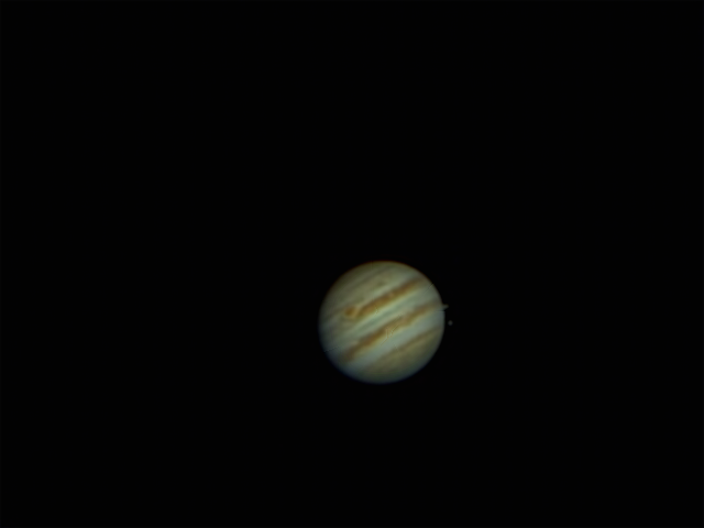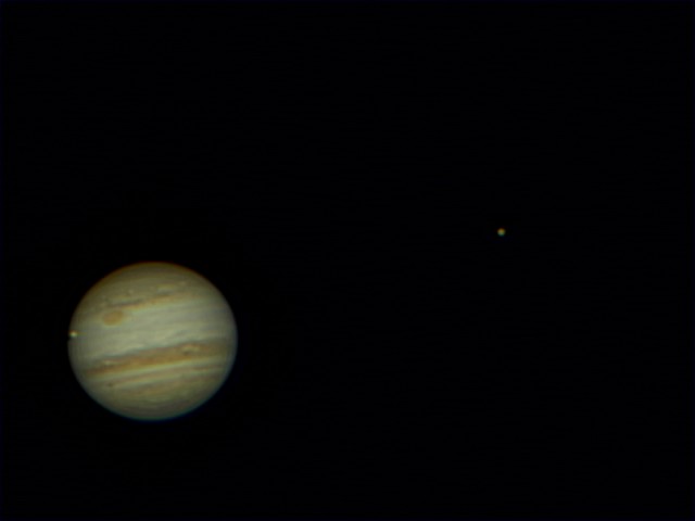 Un ciel voilé mais peu de turbulence: une image acceptable où la grande tache rouge est bien visible ainsi que les lunes Io et Europe.