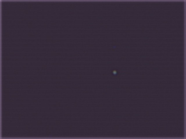 Malgré le grossissement élévé, Uranus n'apparait plus que comme un minuscule disque bleu. C'est la première des planètes au delà de Saturne.
