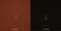 A titre d'illustration, voici deux photographies qui ont été prises dans des conditions très similaires, au zénit et vers minuit, à quelques jours d'intervalle, avec le même dispositif et la même sensibilité.